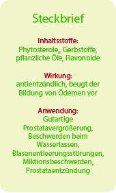 Phytosterole,, Gerbstoffe, pflanzliche Öle, Flavonoide