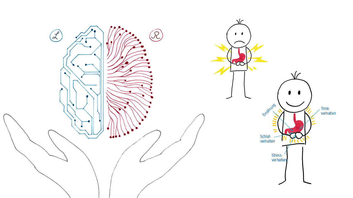TE: Jeder Mensch kann für einen Ausgleich der linken und rechten Gehirnhälfte sorgen. Links steht für Struktur, rechts für Kreativität und Emotionalität. Gesellschaftlich haben wir hier den Schwerpunkt oft auf der linken Gehirnhälfte, so dass das vegetative Nervensystem oft „sympathisch“ angesprochen ist, d.h. sehr viel Adrenalinausschüttung, die über die Nebenniere ins Blut abgegeben wird. Dies sorgt dafür, dass wir hellwach sind, allerdings finden die ganzen Regenerations- und Reparationsprozesse nicht statt. Hier wird in der Behandlung und auch im Lebensstil des Patienten der parasympathische Anteil angesprochen. So kommt dann das Verdauungssystem, das hormonelle System, das vegetative System ins Gleichgewicht.