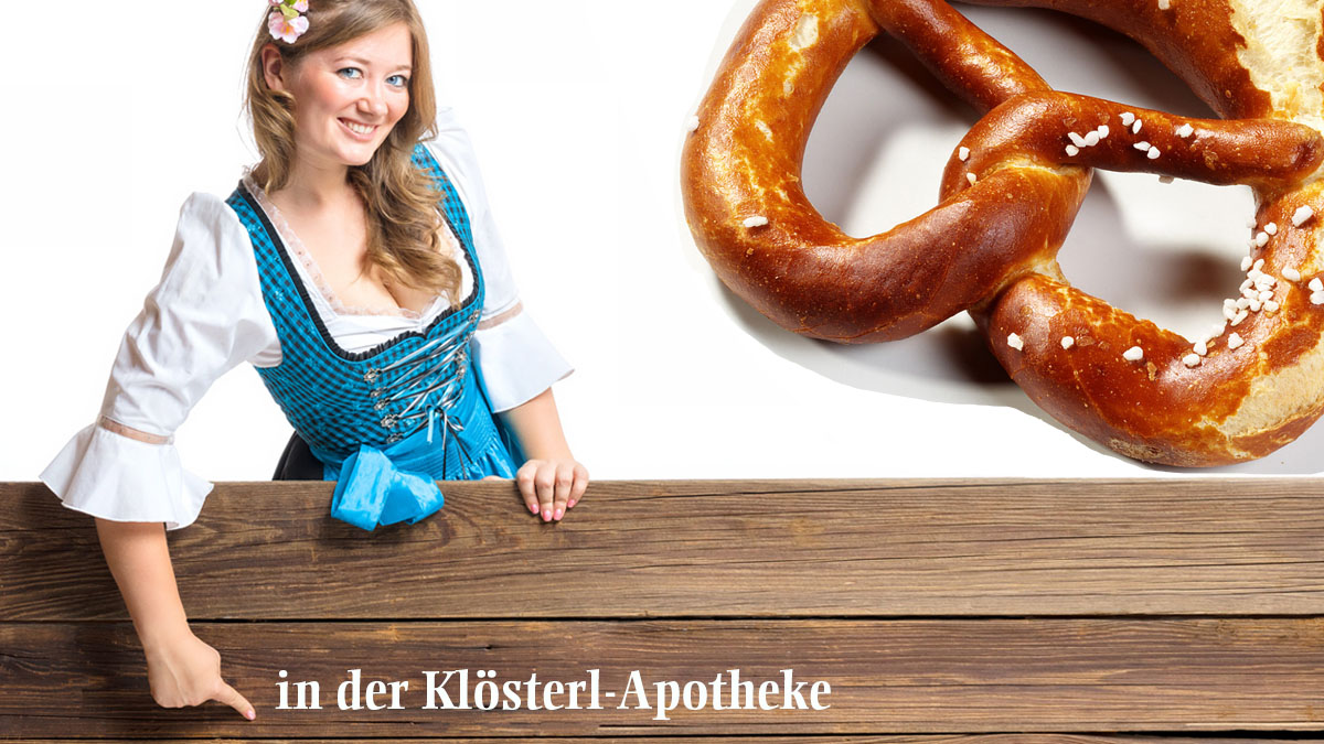 Sie wollen sich im feschen Dirndl für das größte Volksfest der Welt schminken lassen? Fühlen Sie sich herzlich eingeladen - zu unserer kostenlosen Wies’n-Aktion in der Klösterl-Apotheke im Herzen von München, Färbergraben 12, Rückgebäude. Unsere Visagistin Veronika Feig sorgt für Ihr strahlendes, natürliches und individuelles Wies’n-Make-Up.