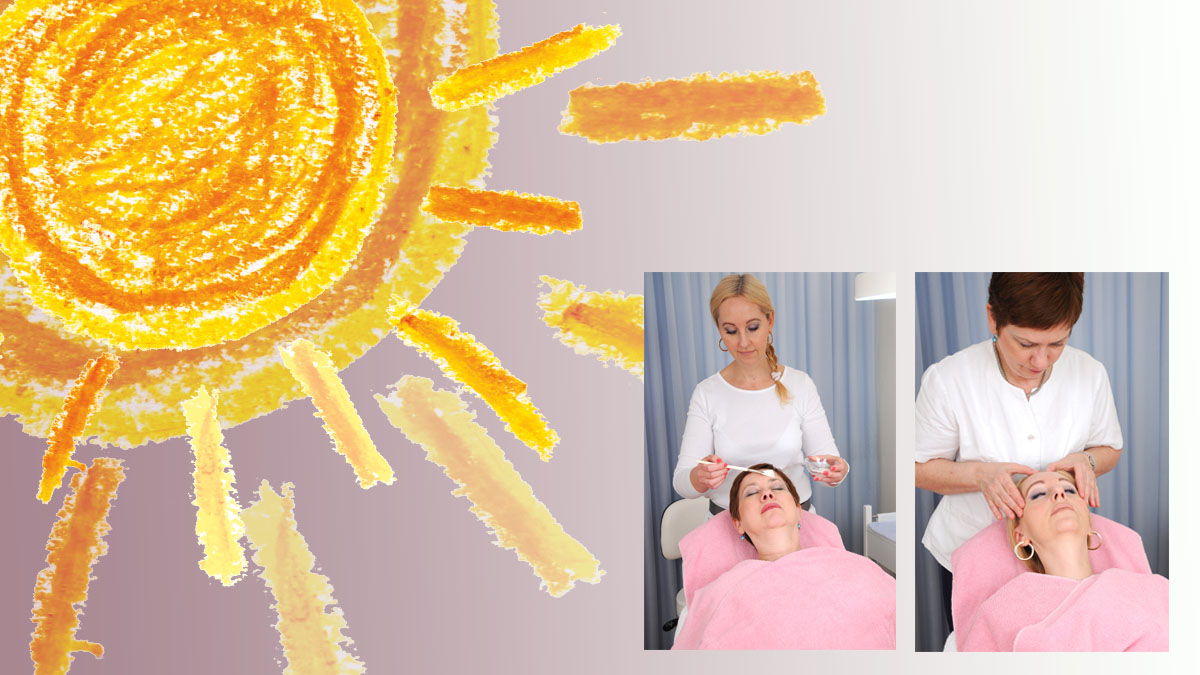 So entspannt, wie Sie jetzt gebettet sind, darf das Gesicht Zuwendung bekommen. Wir beginnen mit der beliebten Digitalpressur, einer kleinen Druckmassage, die Sie in die Tiefenentspannung entführt. Es folgen die klassischen Schritte einer Gesichtsbehandlung wie gründliche Reinigung, Brauenkorrektur, Peeling mit oder ohne Dampf, entfernen von kleinen Unreinheiten. Haarentfernung mit Heißwachs oder Wimpern- und Brauen-Färben können selbstverständlich dazu gebucht werden.