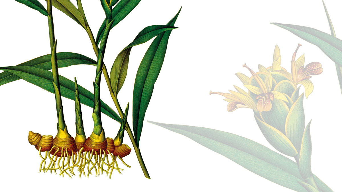 Der Wurzelstock (das Rhizom) des Ingwers ist hierzulande ein beliebtes Gewürz, weniger bekannt ist sein medizinischer Nutzen. In China wird die Wurzel mitunter als „hundertfach scharfe Wolke“ bezeichnet, was sowohl ihre unregelmäßige Form als auch ihren Geschmack anschaulich beschreibt. Die oberirdischen Abschnitte der Pflanze, mit ihren bis zu ein Meter langen Stängeln, lanzettförmigen Blättern und gelben Blüten mit purpurfarbener Lippe, sieht man bei uns nur selten.