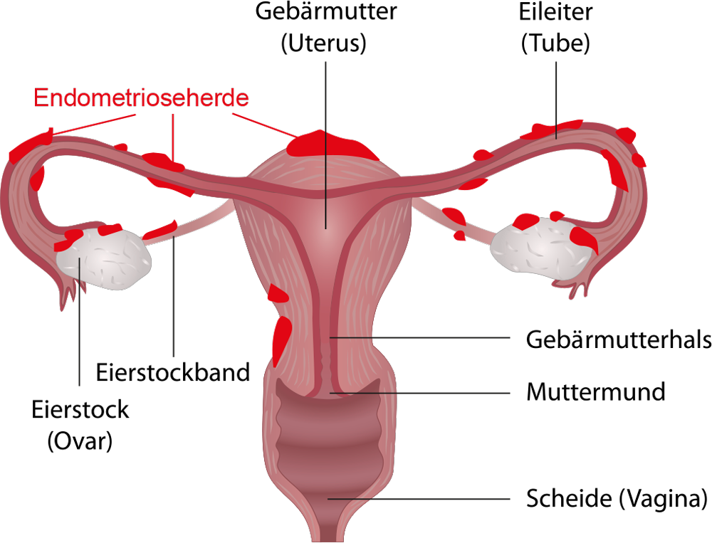 Endometriose ist trotz ihres häufigen Vorkommens und der lebensbeeinträchtigenden Symptome noch immer ein unbekanntes Leiden. Bei dieser gutartigen gynäkologischen Erkrankung befindet sich Gewebe, ähnlich der Gebärmutterschleimhaut (Endometrium), außerhalb der Gebärmutter. Diese Zellen können sich im Bauchraum, im kleinen Becken, an der Gebärmutter, den Eierstöcken, dem Darm oder auch der Blase ansiedeln und werden als Endometrioseherde bezeichnet. Sie unterliegen ebenfalls dem von Hormonen gesteuerten Zyklus, jedoch kann das abgesonderte, schleimhautähnliche Gewebe nicht abtransportiert werden. Als Folge können sich schmerzhafte Zysten, Entzündungen und Verwachsungen (Adhäsionen) bilden.
