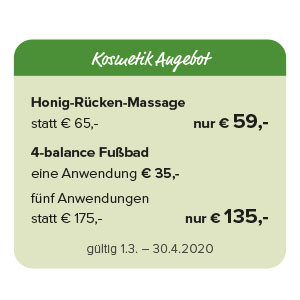 Nachdem Sie eine Gelée Royale Trinkampulle genossen haben, beginnen wir mit der Honigmassage. Durch die klebrige Eigenschaft des Honigs und eine besondere Grifftechnik entsteht eine spezifische, mechanische Pump-Sog-Wirkung auf die Haut, die wir mit keinem anderen Produkt so erreichen können. Abgestorbene Hautzellen werden dabei sanft abgetragen. Die Hautoberfläche nimmt die wertvollen Inhaltsstoffe des Honigs in sich auf und so wird in der Folge die Bildung neuer, gesunder Zellen vermehrt angeregt. Das Ergebnis nach zwei Durchgängen ist eine zarte, entspannte und rosig schimmernde Haut. Die Honigreste werden mit einem feuchtwarmen Tuch gründlich entfernt. Zur Intensivierung und Erwärmung der Tiefenmuskulatur werden Wachsplatinen auf den Rücken gelegt und mit einem gewobenen Schafwollvlies bedeckt. Darüber kommt noch ein gewärmtes Salzkissen, das die Wärme kontinuierlich an den Körper weitergibt. Nach einer Ruhephase wird der Rücken wieder von allen Auflagen befreit und zum krönenden Abschluss mit einer reichhaltigen Pflege massiert. Ein Gefühl der Befreiung und wohligen Entspannung wirkt noch längere Zeit nach.