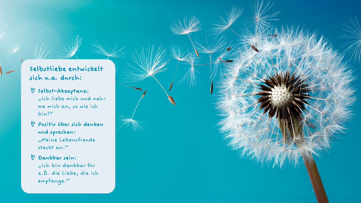 Affirmationen – klare, kurze, positive Botschaften an uns selbst sind ein weiteres, hilfreiches Werkzeug, um Selbstliebe zu entwickeln (siehe blauer Kasten zu Beginn).